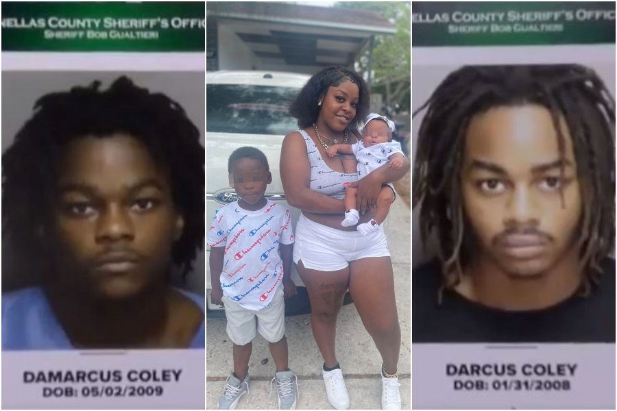 《每日邮报》报导,23岁的大姐鲍德温24日在佛州拉戈市的祖母家遭枪杀,警方研判,开枪的是14岁弟弟达马库斯(左),而达马库斯随后又被15岁的哥哥达库斯(右)开枪射中。