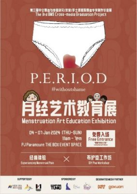 《P.E.R.I.O.D:without shame》月经艺术教育展将在2024年1月4日至7日,早上11点到傍晚7点,在八打灵再也的The Box Event Space举行。