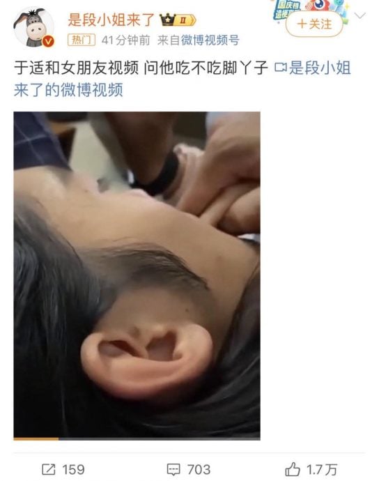 于适的《封神三部曲》才上了第一部就已经暴红,后续还有第2和第3部曲要上。在于适调情视频流出后,有网民酸他“为《封神》没空上课,但有空谈恋爱”,“说是凭自己努力,结果都是靠女友”,但也有死忠粉丝表示,那是他5年前的素人恋爱,算算时间就是进《封神》不久,力挺他表示,“他都27岁了,不可能没谈过恋爱”、“不红时谈个恋爱有什么好大惊小怪”。