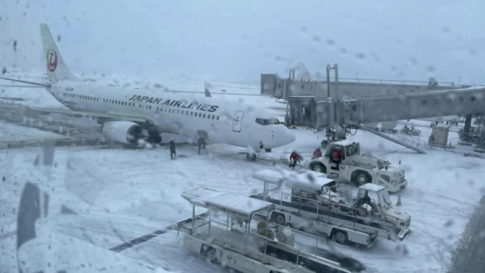 由于北海道大范围地区降雪,已造成位于千岁市的新千岁机场发生21个航班被迫取消、117个航班受到延误的情况。