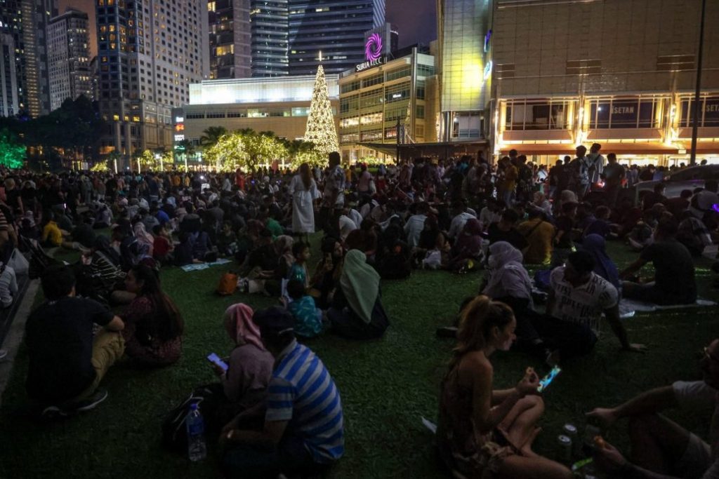 (吉隆坡1日讯)虽然KLCC一带今年不举行任何跨年倒数庆典和烟花表演,但在午夜时刻,人群仍聚集迎接2024年元旦。