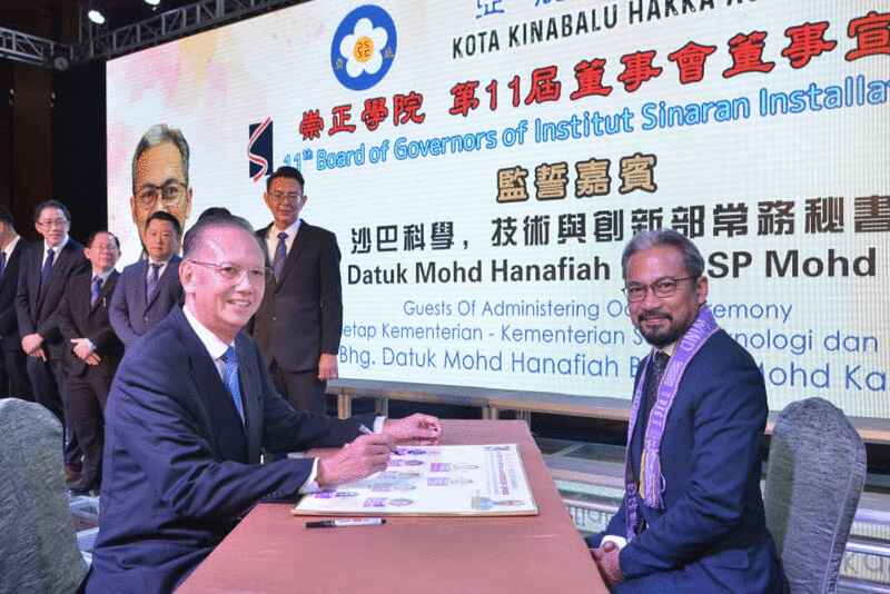 亚庇客家公会昨晚举行四合一活动,即新42届理事、人寿互助股第32届委员、沙巴崇正中学第30届董事以及崇正学院第11届董事宣誓就职典礼。