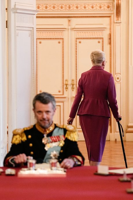 法新社报道,今年83岁、广受欢迎的玛格丽特二世于下午1时30分(大马时间晚上8时30分)后,离开她在哥本哈根阿马林堡宫的住所,乘坐马车前往政府和议会所在地克里斯蒂安堡宫。下午2时,她在国务会议上签署退位宣言,结束52年的统治。