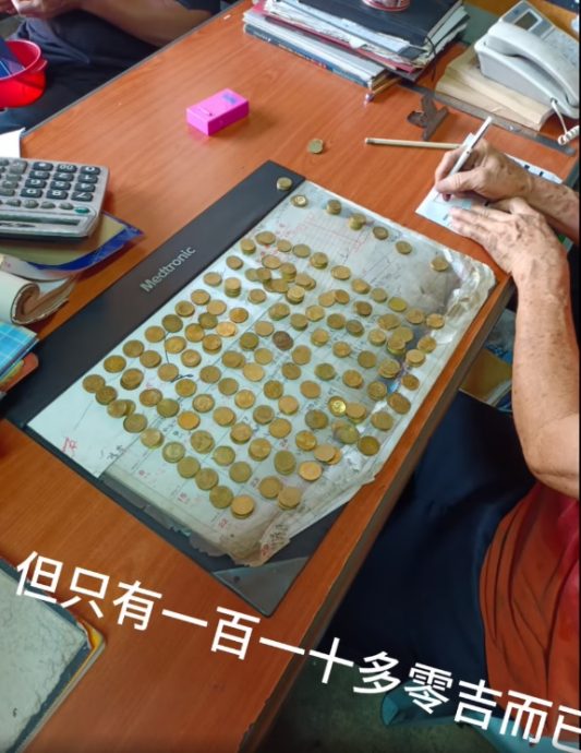 “顾客拿他的红色小盘子出来付款,里面都是零零碎碎的硬币,老板与顾客大家一起数一数,需付500令吉,但只有110多令吉而已。