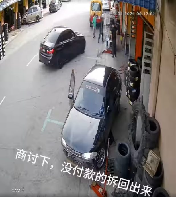 上传视频的网民指出,换轮胎费用数百令吉,但车主只给出一部分钱,因此被轮胎店老板要求拆下新轮胎,怎料车主却直接开车逃跑。