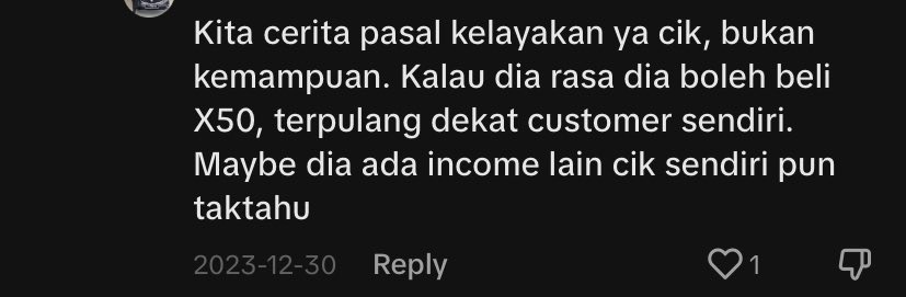 “如果顾客的薪水是4000令吉,并不保证能负担得起X50。顾客可能只能通过7年的贷款从Saga升级到Persona。”