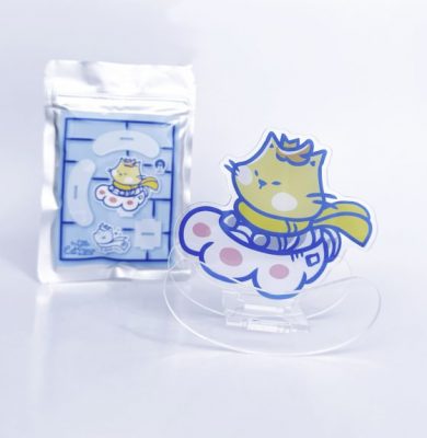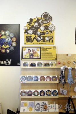 后来,那台扭蛋机随着不同的主题更换不同的蛋,从2019年开始执笔创作猫咪至今已 超过5个系列,多于10种猫咪角色,如猫星人、猫人达摩、猫王子、猫星座等等,周边产品从扭蛋、文具、别针、证件牌挂绳、杯子、杯垫、单肩帆布袋、T恤、万年历、钥匙圈、贴纸、明信片、鼠标垫……品项包罗万象,当中以“玻璃彩绘”为主题,压克力为材质的钥匙圈与杯垫成为大热销。