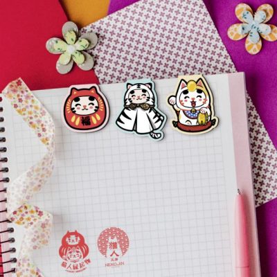猫人工房的许多创作品都受到日本文化影响,如早期的猫人达摩、猫人招财纳福御守,他们的第一个产品是装在火柴盒造型里的“旅猫”贴纸, 正巧冠病疫情被逼闭关,既然很想但又不能旅行,那就让猫带人们去旅行。