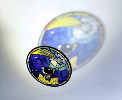 灯光下,透光的压克力窗花杯垫在墙上映照出五彩斑斓的色彩,不禁让人联想起美索不达米亚(Mesopotamia)时期就出现的彩色玻璃装饰物。相传在1世纪以前,古罗马人就已将彩色玻璃使用在窗户上,当日光照射到玻璃时,绚烂夺目的视觉效果让人瞬间穿越,仿佛置身在古罗马帝国时代。时至今日,彩绘玻璃窗在欧洲国家被广泛应用在教堂建筑中。