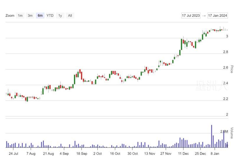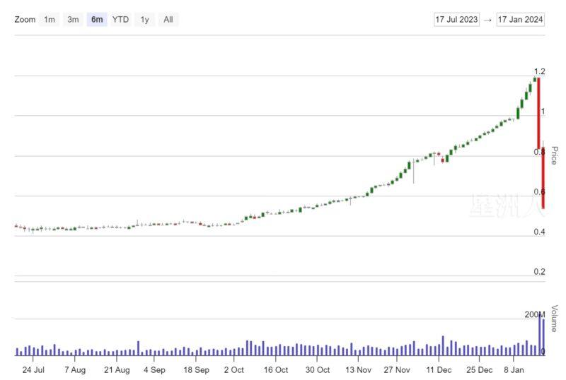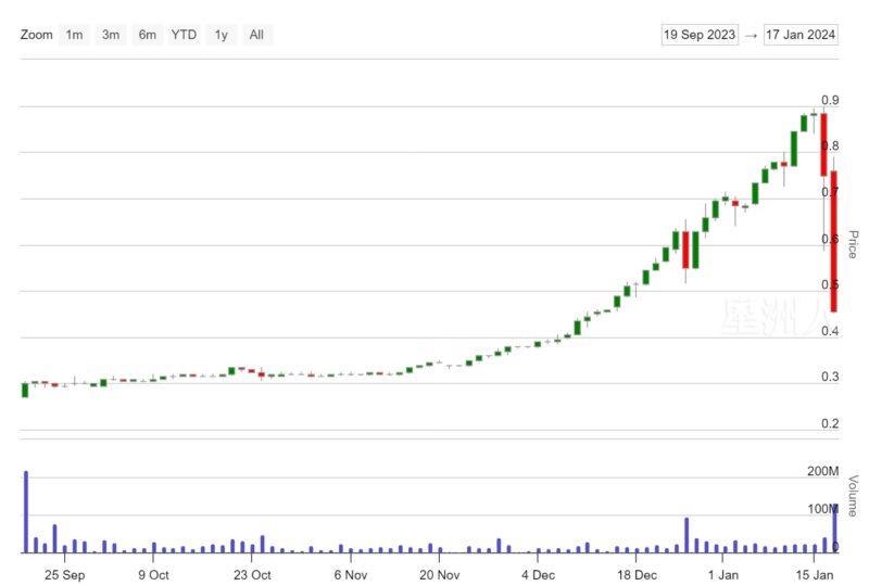 这家公司也是差不多,从10月开始的30sen出,短短的2个多月,就直接被拉升至90sen左右,整整是原先的3倍价格。