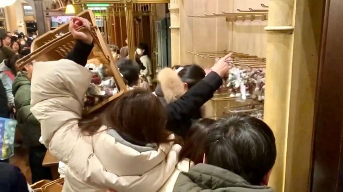 从影片中可见,一群中国人挤进东京迪士尼商店,一群人疯抢达菲熊玩偶。旁边有日本店员不断大声叫喊:“很危险”、“请不要推挤”,可是现场中国游客完全没在听,依旧持续疯狂扫货,就现场目前的日本游客指出,真的不到几分钟,原本架上满满的达菲熊玩偶,完成被扫光,只剩下不是达菲熊的产品,孤零零地挂在架上。