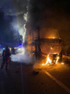 仕林河消拯局今日清晨5时19分接获投报,指南北大道375.4公里,向北路段发生一宗双层长途巴士起火事故,事发时巴士内有2名驾驶人员与17名乘客,男性乘客14人及女性乘客3人,巴士是从柔佛开往北部。