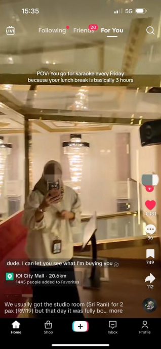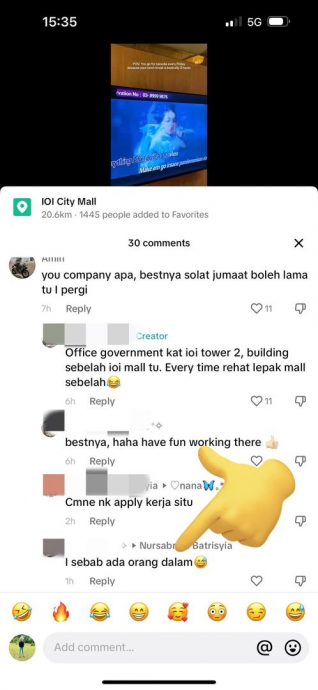 她还表示,自己经常在休息时间去到附近的购物中心。虽然她没有直接透露自己的职位和雇主,但有提到自己是通过“大马短期就业计划”(MyStep)的系统进入统计局。