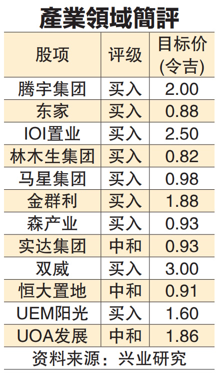 (吉隆坡26日讯)随着大型经济和基础设施发展项目等正面消息持续流出,分析员认为,市场情绪将继续受到提振,看好产业领域评级还有上调空间。