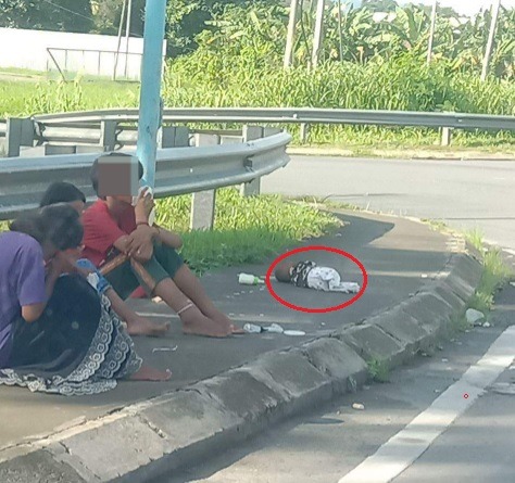 (八打灵再也26日讯)社交媒体昨日流传一张令人心疼的照片,可见一名婴儿被放在路肩上,随同家人一起在路边行乞。