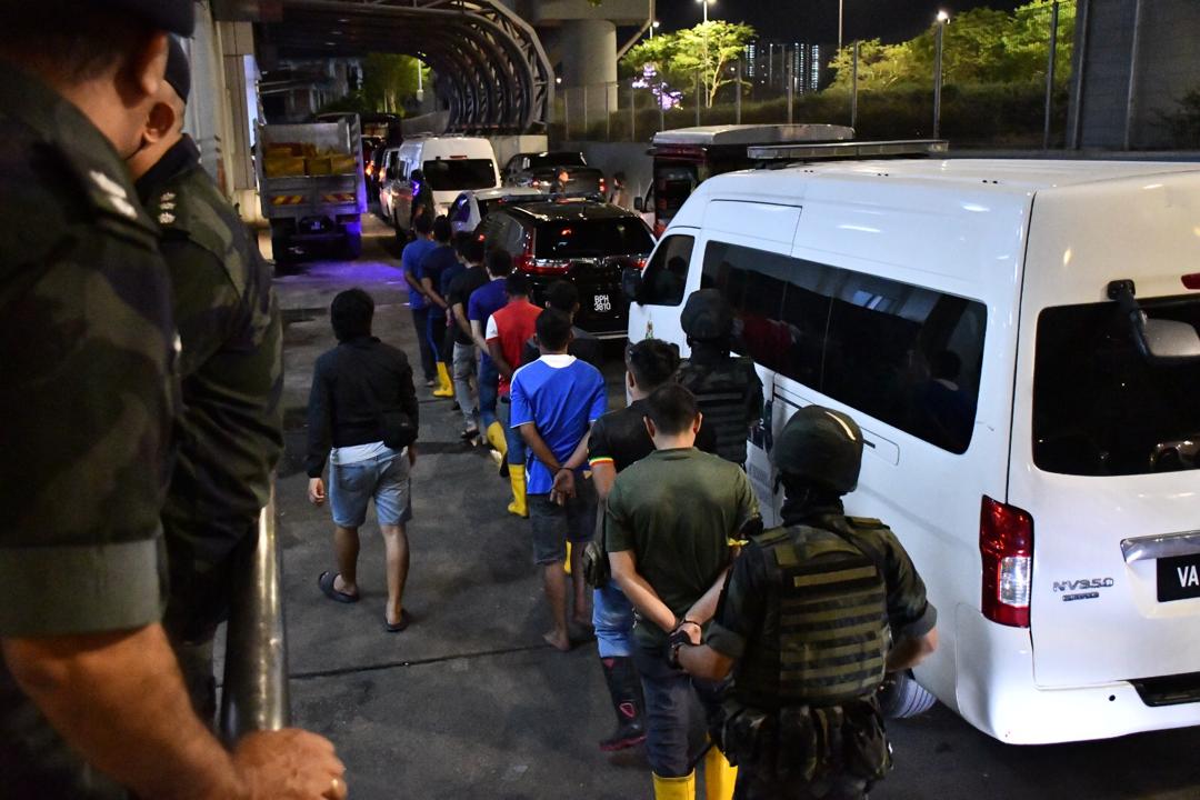 视频|凌晨扫荡士拉央旧批发公市 警方逮捕108非法外劳