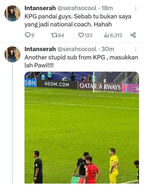 大马足总秘书拿督诺阿兹曼昨日在吉隆坡国际机场迎接大马国足时表示,身为足球员,英丹莎拉不应该透过X网站发布批评的声明。