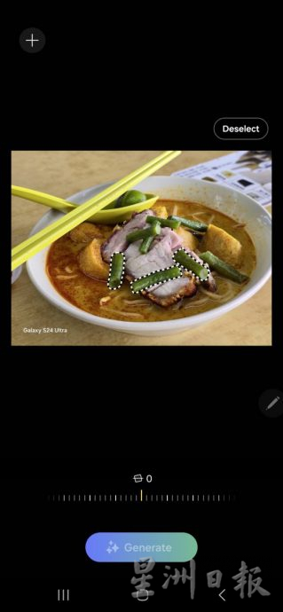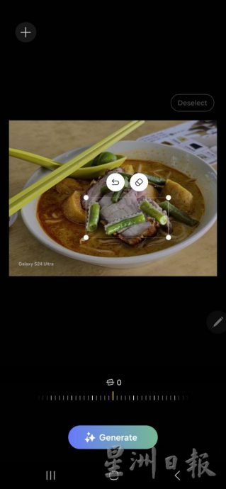 | 4. 选择删除,再点击下方的“Generate”,Galaxy AI就会自动删除和生成所需的画面内容。