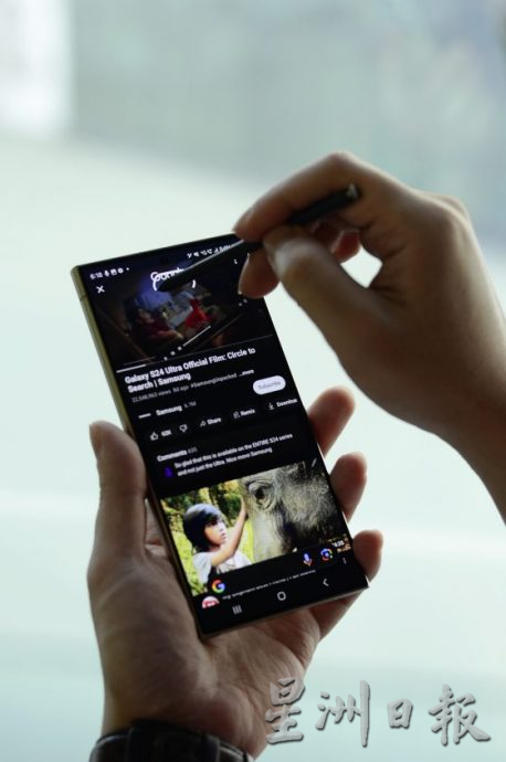 如果有常用“Google Lens”,对“以图搜图”的搜索功能应该不陌生。可是,Galaxy S24 Ultra会更方便。因为当用户在滑脸书、YouTube或网页时,看到感兴趣的产品,又想知道更多详情。只需长按屏幕下方中间的“Home”按键,屏幕会弹出一层蒙板。此时,用S Pen或手指圈出那样物品,AI就会自动用谷歌搜索,找出相似的物品资讯内容。这样一来,你不用再像以前一样截图起来,在谷歌用图片搜索功能。