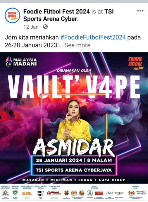 日前,一名为“Khairul Hafidz”的社媒X用户发帖质疑,于周五(26日)在赛城举行的一个项目是否获得了一家电子烟公司的赞助。
