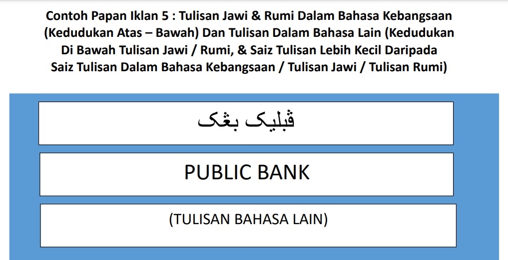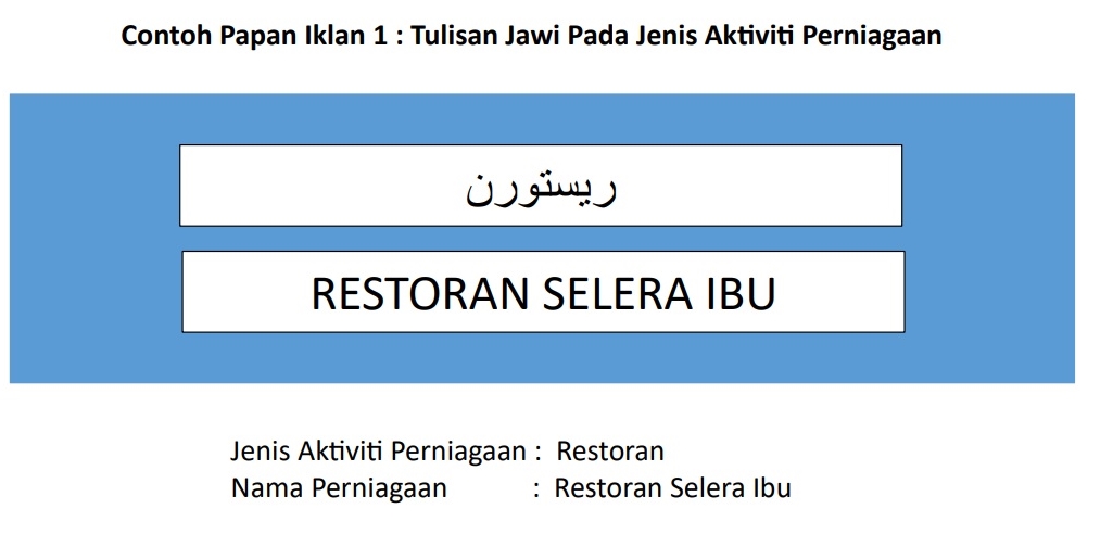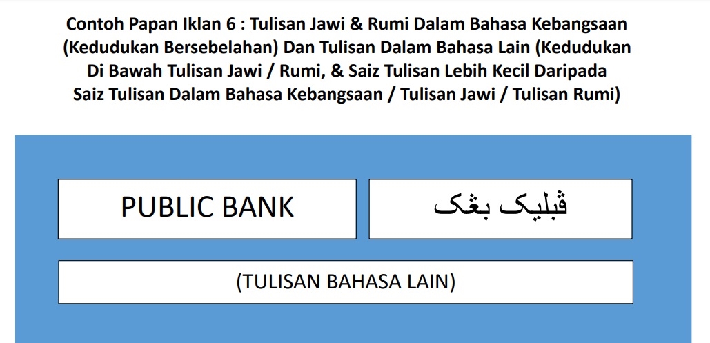 当局也规定所有爪夷文书法,需以Sakkal Majalla、Uthman Taha、Arabic Style字体或加央市议会批准的字体,同时也必须获得玻璃市宗教及马来风俗理事会(MAIPs)、国家语文出版局(DBP)或加央市议会批准的单位审核。