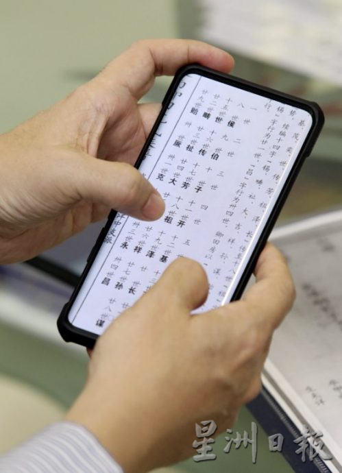 “遗憾的是,虽然我们家族有族谱,但是因为印制数量有限,堂哥家只有一套,没有多余的可以让我们带回来,唯有用手机拍下我们这一支的资料存档。”