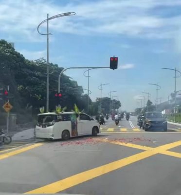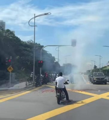 灵市警区主任莫哈末法克鲁丁助理总监今晚发文告说,警方昨日在社媒发现上述22秒的视频,显示送殡人群中,1人拦路并在交通灯处燃烧爆竹。