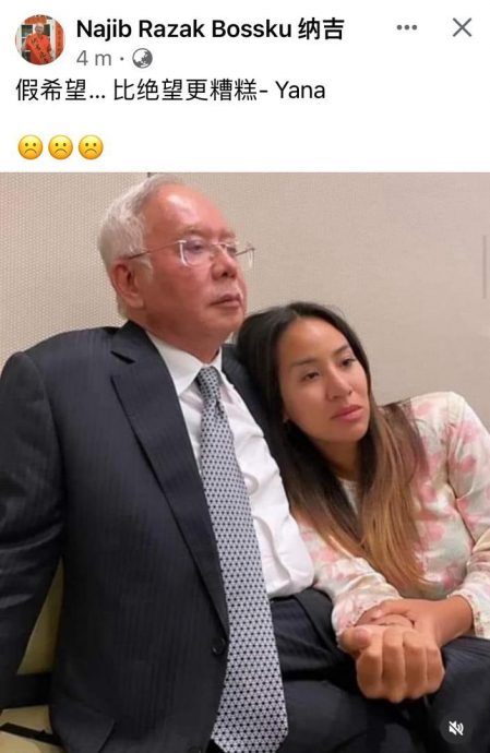 她在贴文中也配上一张依偎在纳吉身旁的照片,父女俩看起来心事重重。
