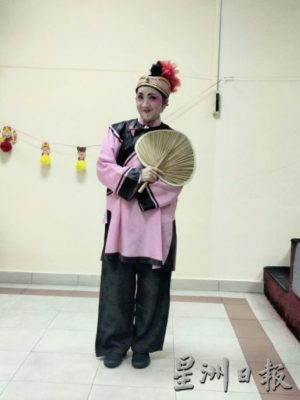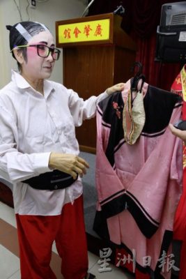 在画眉的部分,以前男生画好眉之后,需要用粘纸将眉毛的尾端往上提,显得俊秀。现在新式的琼剧妆容反而没有计较这些了。她笑说,丑角的眉毛会更多姿多彩,可以配合角色性格,时长时短,又能画八字眉。
