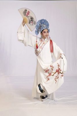 朱运辉以琼剧《张文秀》的选段《偷包袱》为例,穷书生服装没有任何绣花图案,颜色也倾向淡雅素朴,大多是白色、蓝色、浅蓝色、灰色、黑色等等。富裕人家的服饰颜色会非常显眼,选用红色、黄色,衣上还会绣花金边。当官之后就会穿上蟒袍。至于小姐(花旦角色)的服饰,出身富裕者肯定会有一袭华美艳丽的服装,绣片闪闪。反之,穷困人家的服饰极为素雅。所以在台上时,可以轻易分辨出来。