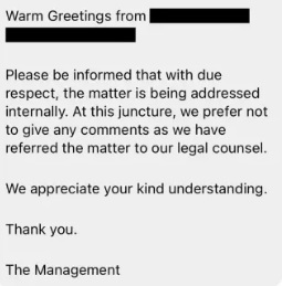 网媒worldofbuzz较后针对阿曼达的事故联系涉事的水上乐园,对方表示他们正在内部解决此事,并指事件已交给法律顾问处理,因此拒绝作出任何回应。