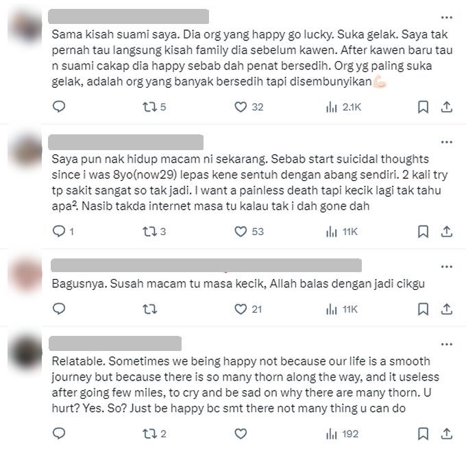 一些经历过“黑暗时代”的网民也说,“我现在也经历同样的事情。可是想想,与其悲伤,不如微笑、快乐的活着,长时间处在悲伤很容易让人的胜利和心理生病。”