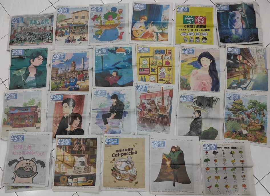 初三那年,鼓起勇气去面试雪隆区学记,没想到被录取了。想当学记,也是受到《学海》周刊的影响,看着学哥学姐在〈噢!中学〉发表的时事评论觉得太酷了!说实话,我总是期待每逢星期一新鲜出炉的《学海》,精美的封面深深地令我陶醉其中,让我再次感受到插画的魅力。除了写作,它也为爱画画的中学生开设了绘画专栏──〈2X好画〉(PG.18),和写作一样,作品刊登后,也会奉上稿费。