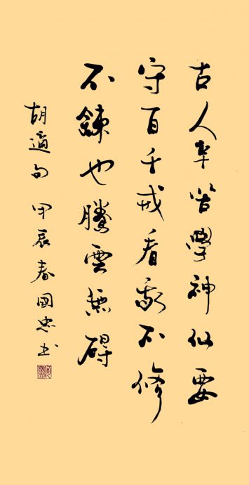 1935年,胡适发表小诗〈飞行小赞〉。诗分两节,第一节为“看尽柳州山/ 看遍桂林山水/ 天上不须半日/ 地上五千里”。第二节胡适写“古人辛苦学神仙/ 要守百千戒/ 看我不修不炼/ 也腾云无碍。”是不是绅士不重要,虚名或头衔不重要,骨子里的和作风才会激起我们谈兴。乐人乐己,不负人不负己,觉得自己腾云无碍,也希望别人一起同行。