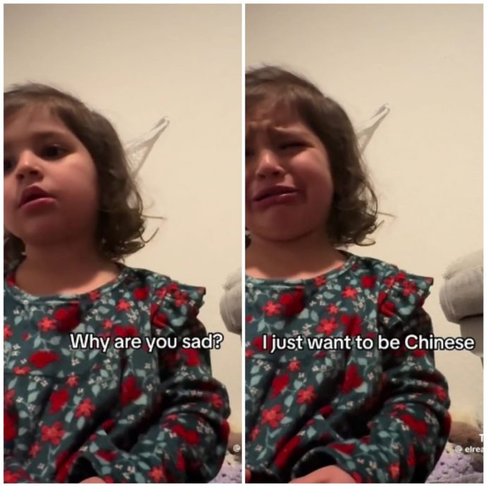 “为什么呢?”她父亲接着问道,小女孩一边哭一边回答说:“因为我想当中国人。”