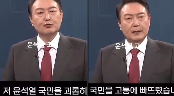 在这段时长46秒的视频中,“假”尹锡悦说:“尹锡悦政府无能、腐败,特权和犯规,不正与腐败都是家常便饭”,“我尹锡悦执迷于有悖常识的理念,毁掉大韩民国,让国民陷入痛苦。”