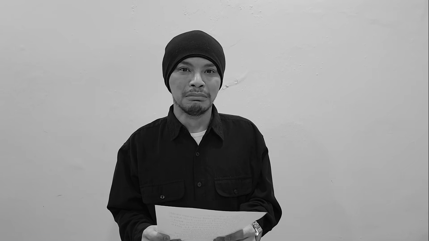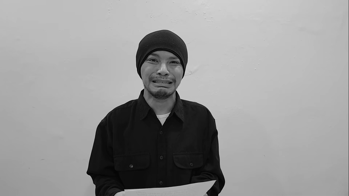 黄明志手拿稿纸,口操英文隔空道歉,并开始大声抽泣。