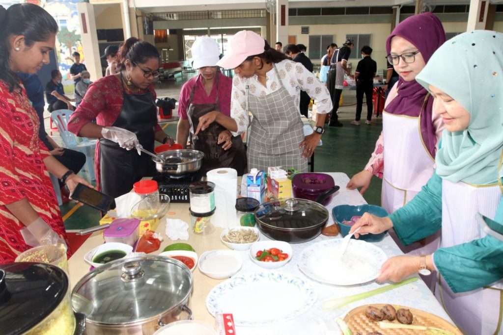 12名巫裔及印裔教师,身穿一袭民族传统服装,现做拿手传统美食!波德申中华中学的教师通过厨艺交流会,展现大马丰富多元的美食文化,更体现了我国各族之间的和谐情谊。