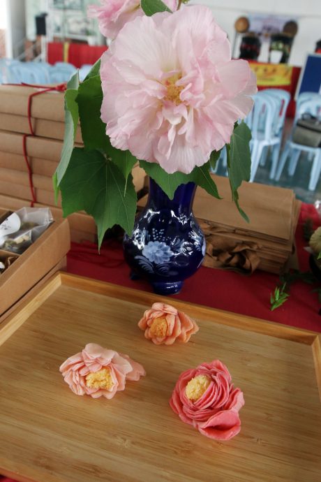 与此同时,波中也在学生家长伍娉芳的配合下,现场展示将波中校内种植的木芙蓉花,制作成木芙蓉花酥,只见伍娉芳将开好的酥皮捏成花瓣形状,再投入锅内油炸让其瞬间“开花”,让在场者赞赏不断。