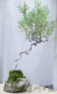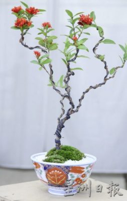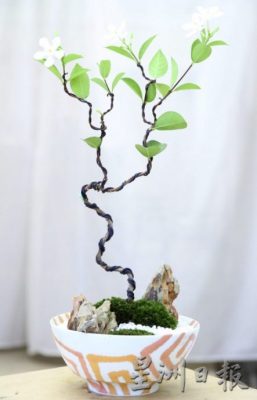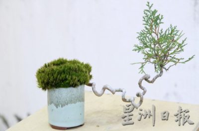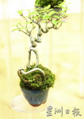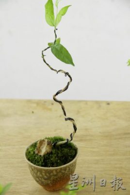 张堡强解说,一棵稳定的新手苗,从种子发芽到细长的枝条适合用作拿弯,需要一年半左右的时间才能完成。用金属丝如铝线蟠扎以对枝条缠绕后,还需置放一段时间作为观察期,待确认植株健康扎根生长,才交到消费者手上。
