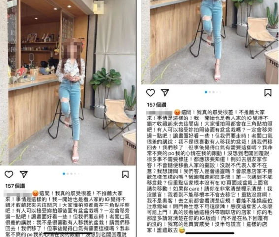 台湾一名女子为了拍照擅自移动咖啡店盆栽,被老板要求“移回去”后,竟发文公审老板“态度差”!
