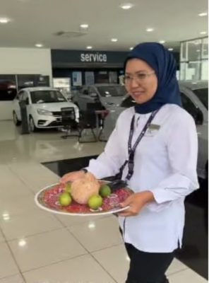 女销售员艾拉在TikTok发布视频,分享她为印裔客户到其服务的宝腾汽车(Proton)中心喜提新车时,所准备的小惊喜。