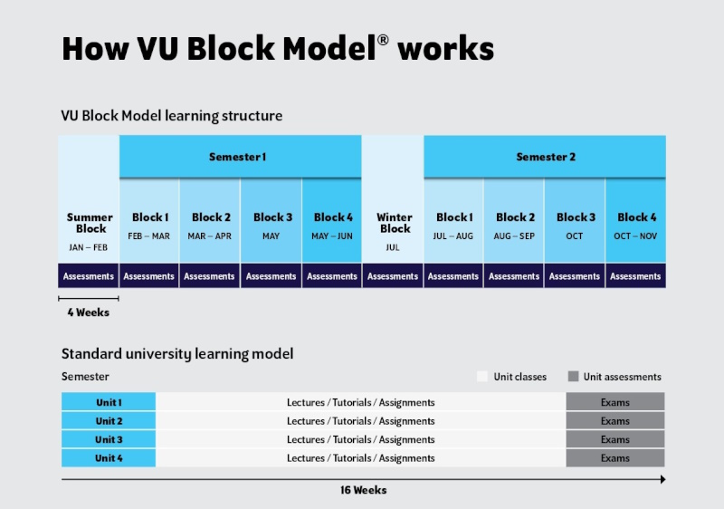 如果你不想长时间坐在课堂里被动地接收知识,也担心一个学期需修读多个科目会应付不来,也许澳洲维多利亚大学(VU)独特的模块式教学(Block Model)就是特别为新生代的你所量身定制的。