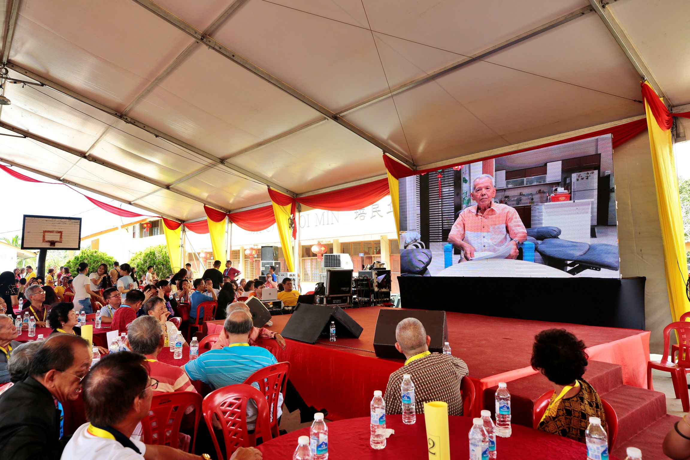 其中一位不克出席的前校长,特别录制一段视频向校友们问好。