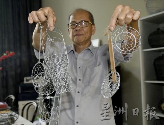 66岁的曹志明,来自森美兰的文丁小镇。文丁小镇因为盛产锡米,在19世纪聚集了许多中国劳工,如今仍然存在的百年客家村就是最好的证明。在那个年代,每个家庭都是“大户人家”,生很多孩子。曹志明的父母育有13个子女,养家糊口不易。其父亲曹友在从事水泥工之余,也制作铁丝篮子填补家用。同时,他也接下同乡的请求,制作“捞面漏勺”卖到吉隆坡茨厂街。