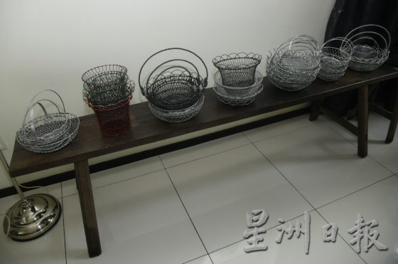 “一个铁丝篮子要花上两天的时间,很多时候我做到一半就放弃了。”毕业于马来西亚艺术学院(MIA)的曹志明,对美感有独特见解,对自身更有要求,“洞与洞之间的缝隙,我都要量,不然讲求对称的篮子歪掉人家不喜欢。”