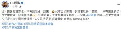 阿沁前天(11日)才举办盛大的发片记者会,当天同时也是他的44岁生日,花花带着女儿到场支持,昨他也在脸书发文晒恩爱,感谢老婆一路以来支持,感性表示:“我最爱的女人花花,一直相信我、支持我。”