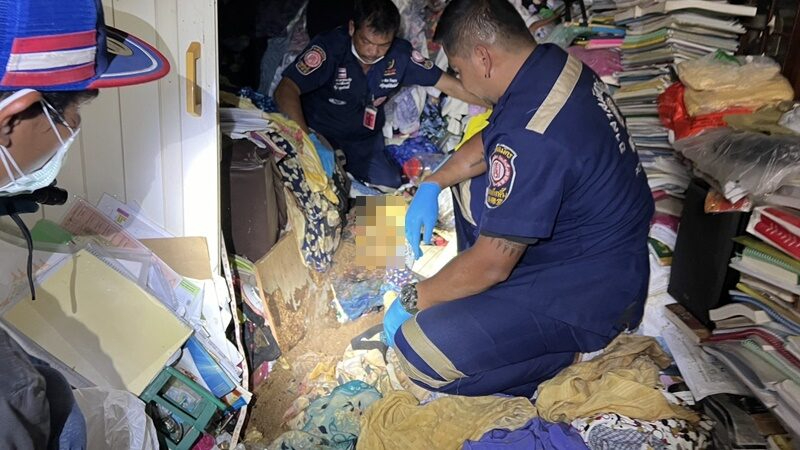 暖武里府直辖县塔塞镇警方周二(12日)下午约4时接到有人身亡的投报,联同善堂人员及法医前往现场调查时,发现浓密的树木遮挡了屋前停放的一辆汽车,屋内也停放有一辆汽车,全部蒙上一层厚厚的灰尘。