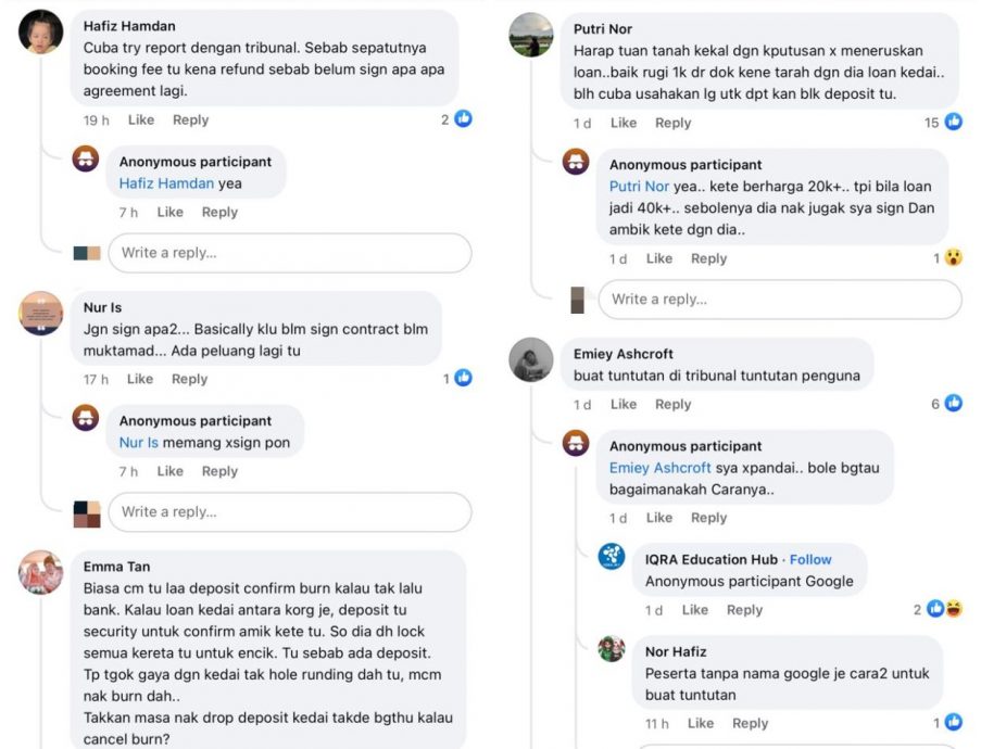 根据Tanya Peguam脸书群组上的分享,这位女士表示,当她想取消购买二手车时,问题开始出现了。