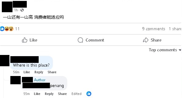 由于帖文上没有注明茶餐室的地点,引起网民的好奇,纷纷留言追问是哪家茶餐室,有网民留言表示,这家征收2令吉坐台费的茶室位于槟城。